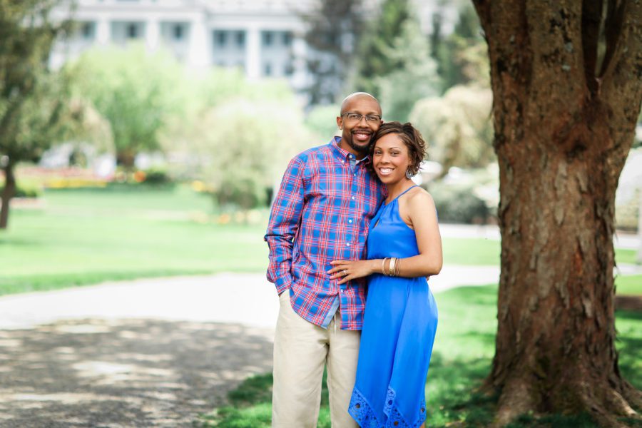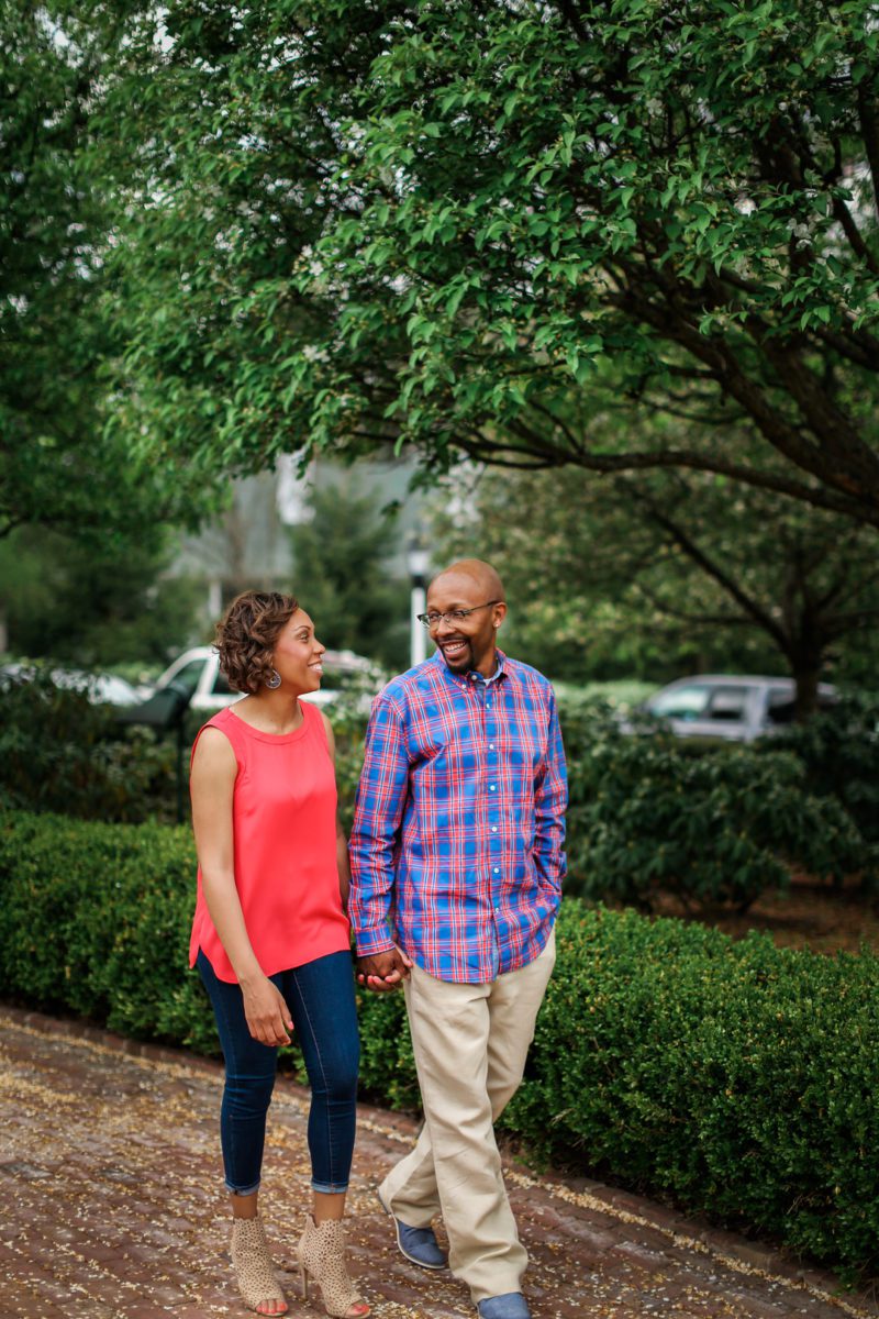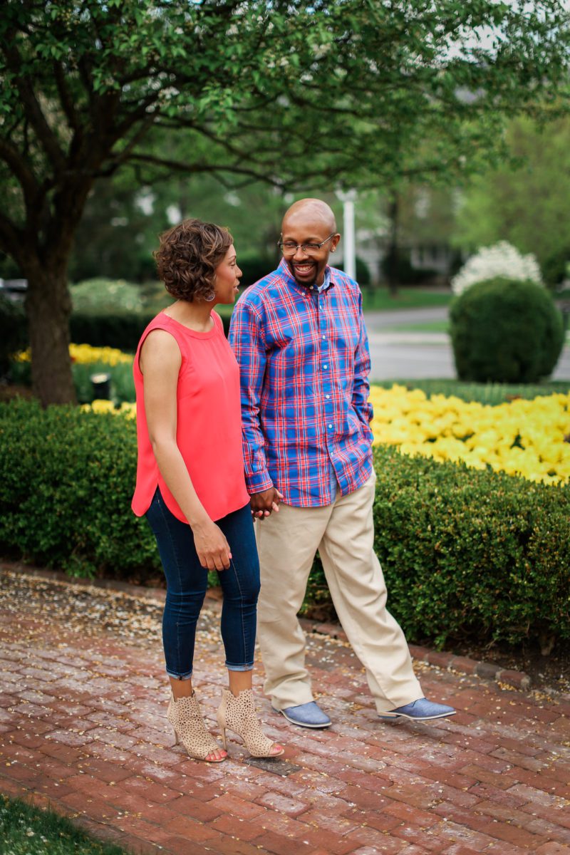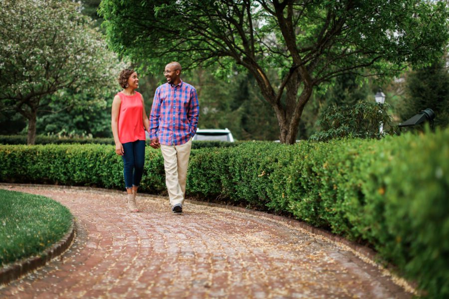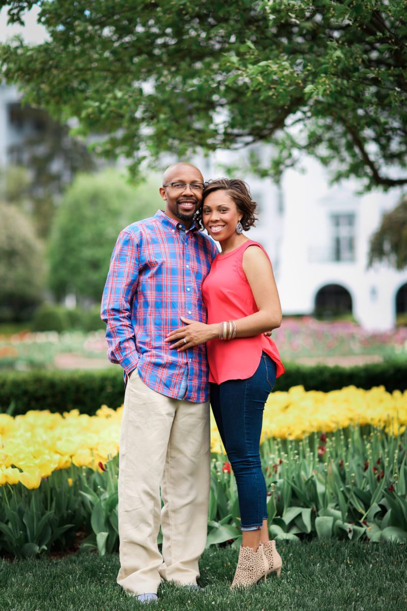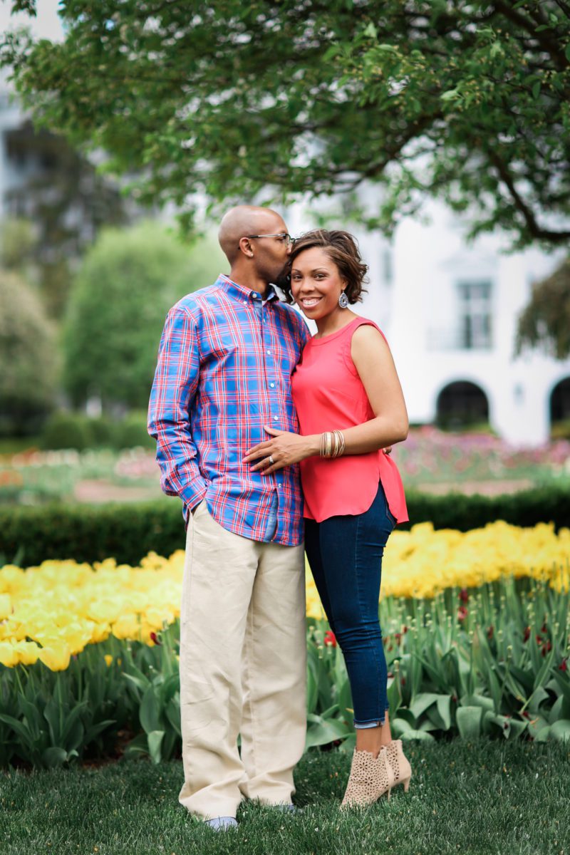With lots of scheduling conflicts throughout the course of our correspondence we ended up shooting midday with Keisha and Larry at The Greenbrier Resort in White Sulpher Springs, West Virginia. If super sunny, the plan was to shoot our entire engagement session indoors, and while The Greenbrier is breathtaking (inside and out), it was really my hope for an overcast day so we could take advantage of the beautifully landscaped grounds at America’s Resort. It seems Mother Nature was partially on board and decided to give us a cloudy day, and while we spent a lot of our time waiting for the sun to go back behind a cloud, it also gave me a chance to get to know Larry and Keisha more! It’s such a small world, because Keisha and I know a lot of the same people, even though we had never met!