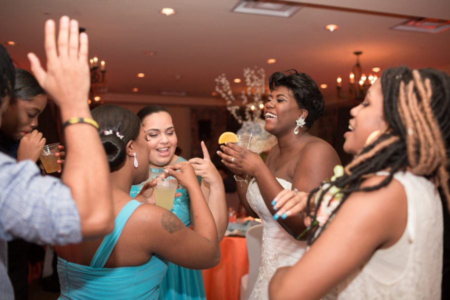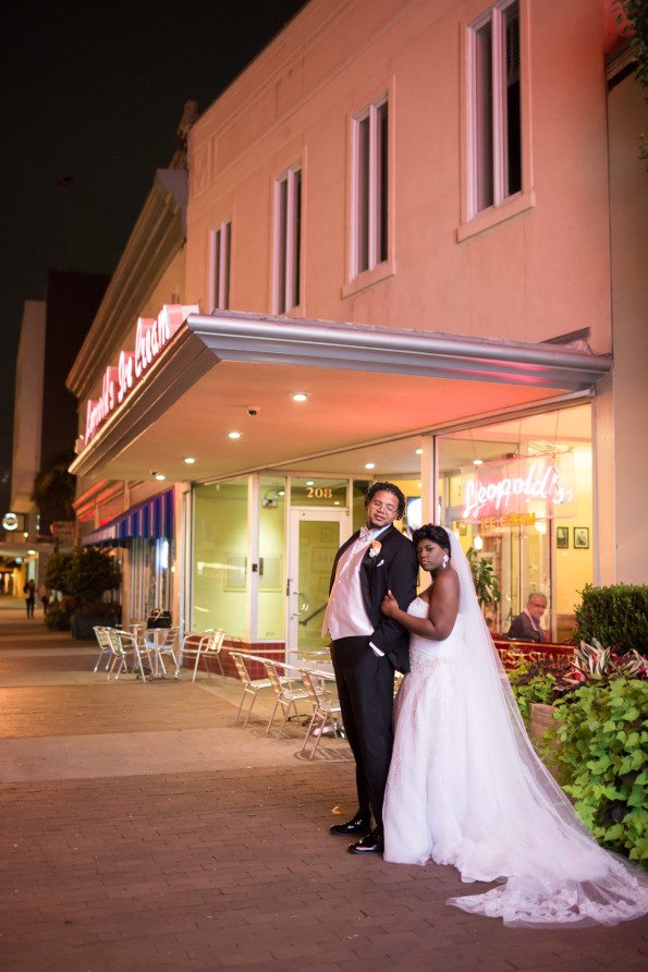 It wasn’t during the wedding, but after the reception it is a tradition in Savannah, GA to go out and party with your wedding party and a few guest while everyone is still in the wedding attire (wedding dress, tuxedo, etc.)