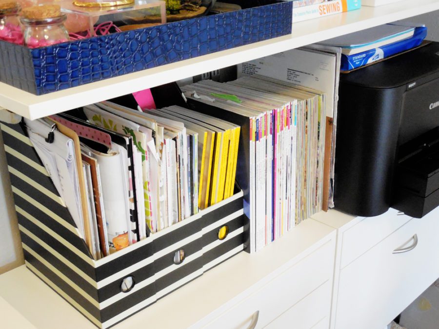 For me, magazine files are a must have, because I have a lot of notebooks, paperwork, and loose items that I use each day. I use the magazine files to corral my stuff so I’ll always know where to find it.