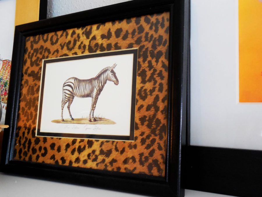 My favorite piece of art is a framed illustration of a zebra with leopard print matting. I got it from a flea market in the city and can’t imagine ever parting with.