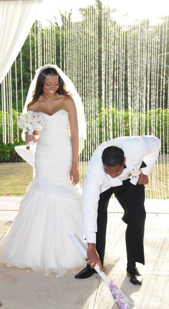Jumping the Broom! I love the history and the symbolism behind it, and before we jumped our officiant had Melvin sweep all the negative energy away with the broom. All of our wedding guests stood and cheered as we jumped, I can still feel the joy from that moment.