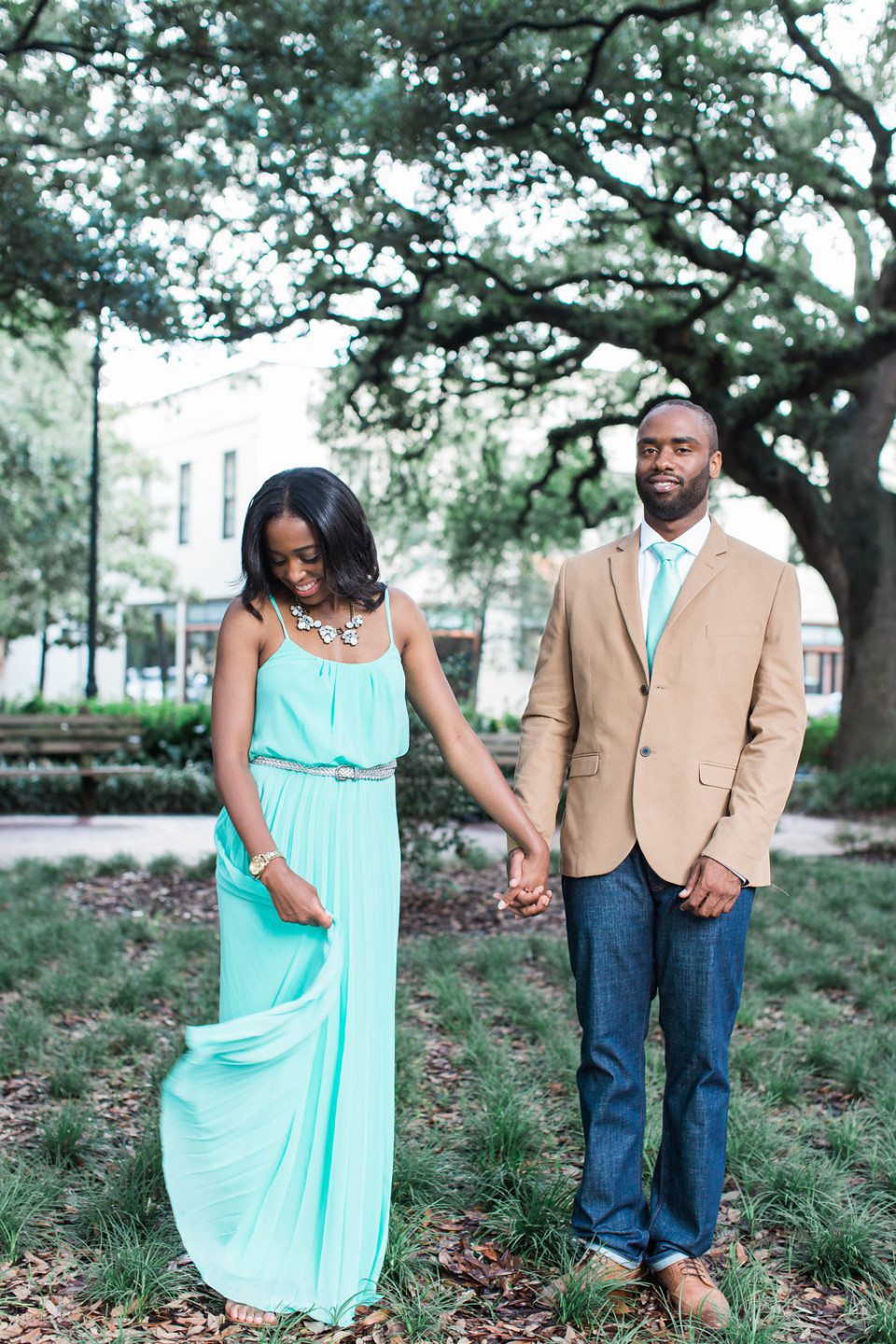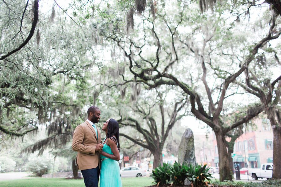 We live and breath for a traditional engagement session and this one sets the bar high. Between the beautiful Spanish moss and coral backdrops, this Savannah engagement is everything a southern bride dreams about. Chewanda and Brandon are such a cute couple and we are so excited to feature their love story. This Howard University belle met her dream man in the Washington, DC area and she made sure to take it back home to her Georgia roots for a southern inspired engagement shoot. Enjoy this couple and their beautiful love story!