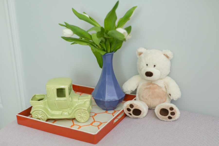 I’m obsessed with the vintage Lane Furniture credenza we utilized as a changing table. Why? I love that this classic piece can transition to nearly any space in their home.