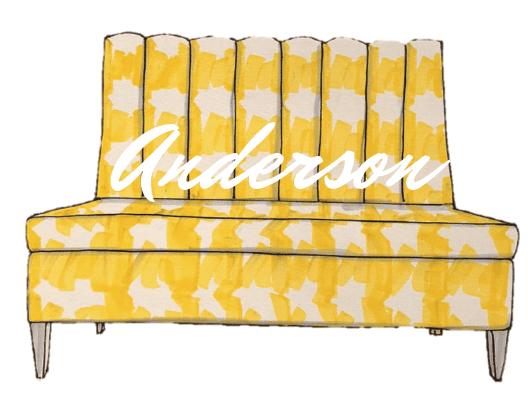 This bold preppy piece is one we can’t wait to see in person and Luckett describes her inspiration for it here: “My family has greatly influenced my design aesthetic. Growing up, my maternal grandparents worked very hard and took great pride in the home they created. Sunday afternoons were spent gathered around their dining table for post-worship feasts. The Anderson banquette not only bears their last name but features strong lines inspired by the strength and character they possessed.”
