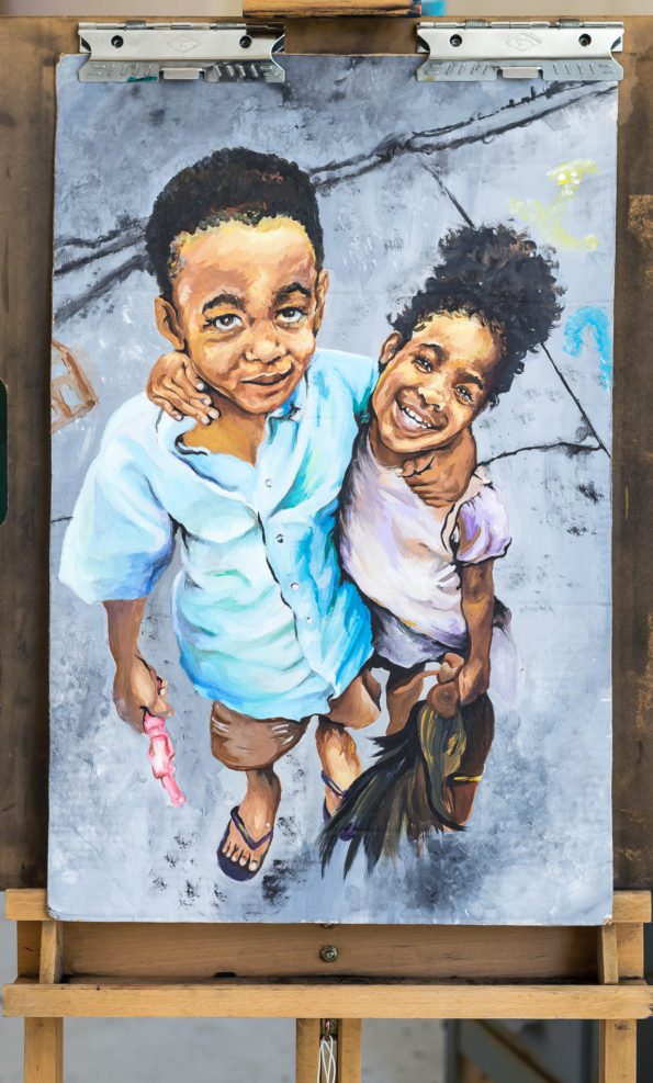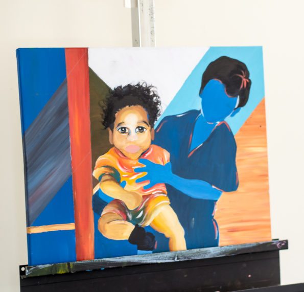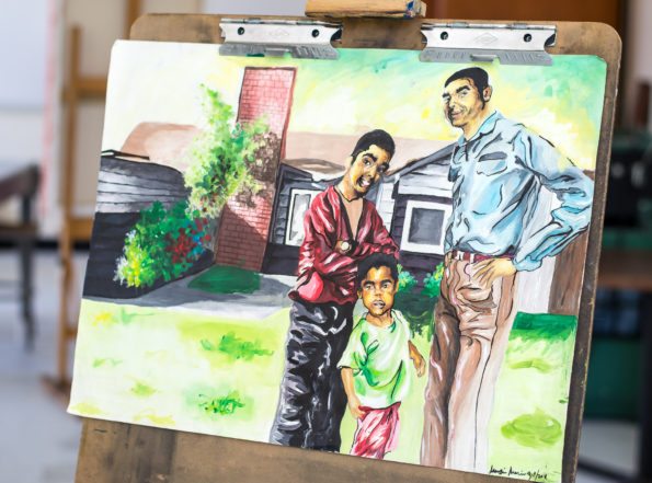 When I was younger in middle school, I wasn’t allowed to really participate in normal middle school activities. My dad kept me in the house a lot. So I started drawing to keep myself occupied. One day, my dad brought home two full boxes of printer paper and I would draw every day. Eventually, when I got to high school, I had a teacher who encouraged me to paint. I had been mixing colors using color pencils and she expressed how well she thought I would be if I began to paint. She felt I was ready and would be great at it. Of course, I was afraid because I had never used paint and I was not comfortable with it. I gave it a shot and I fell in love with it. From there I started realizing that the things that I found so fascinating, which was my family, inspired me to create paintings that meant something to me.