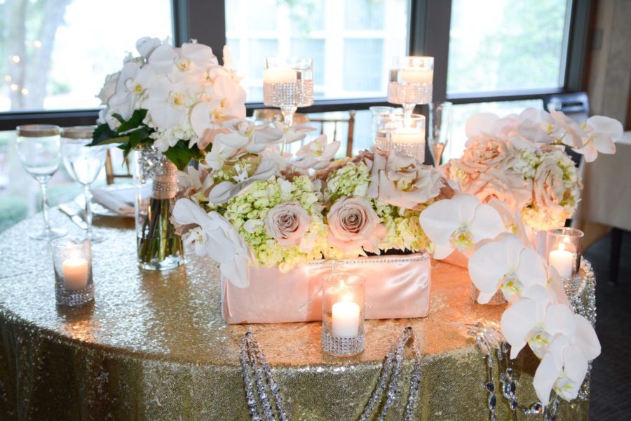 In the south, we love flowers and incorporated them in our wedding. Roses and hydrangeas are grown in our own backyards additionally we added my favorite flower: phalaenopsis orchids.