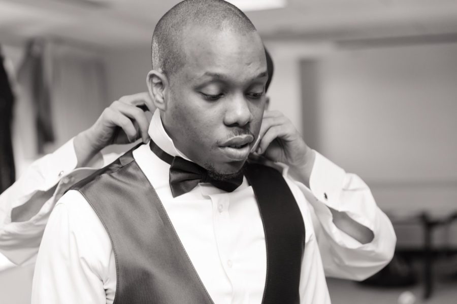 How did you incorporate your alma maters into your wedding experience? The aforementioned DIY aspects as well as large photos of us dressed in our school cardigans and school umbrellas displayed on easels, black and white photos from moments in our school’s history displayed on each guest table during the reception, and a hanging scrapbook page displayed on the photo booth table decorated in our school colors and showcasing two film strips with photos of Jerrod and I showing off our HBCU props