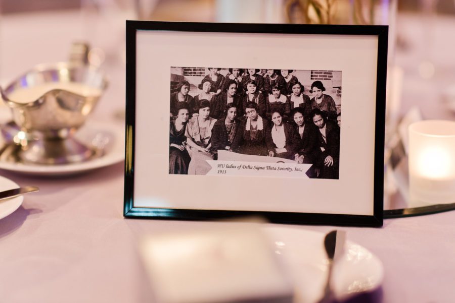 Did you do any DIY? If so, what? Several pieces on the welcome table, including decorative candles, a blinged out “K”, a Black and White HBCU history photo album, and HU/NC A&T themed props that graced the photo booth table (e.g., NC A&T/HU billboard sunglasses, pom poms)