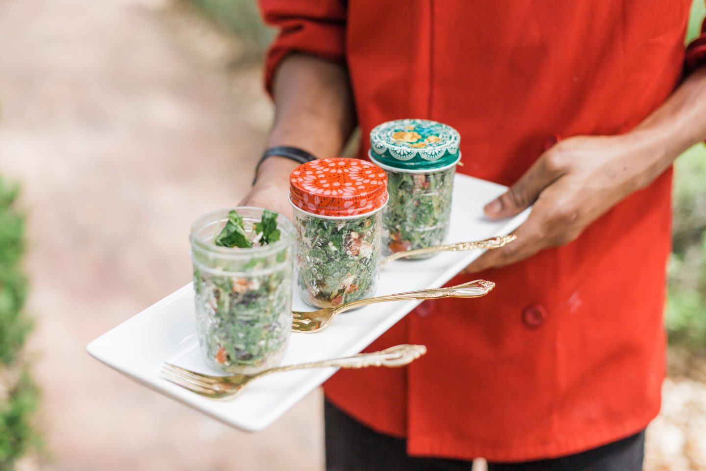 If you choose to use flowers, use those that are not as fragrant as it will over take your senses and alter the taste of the food. This is a tip for any event.