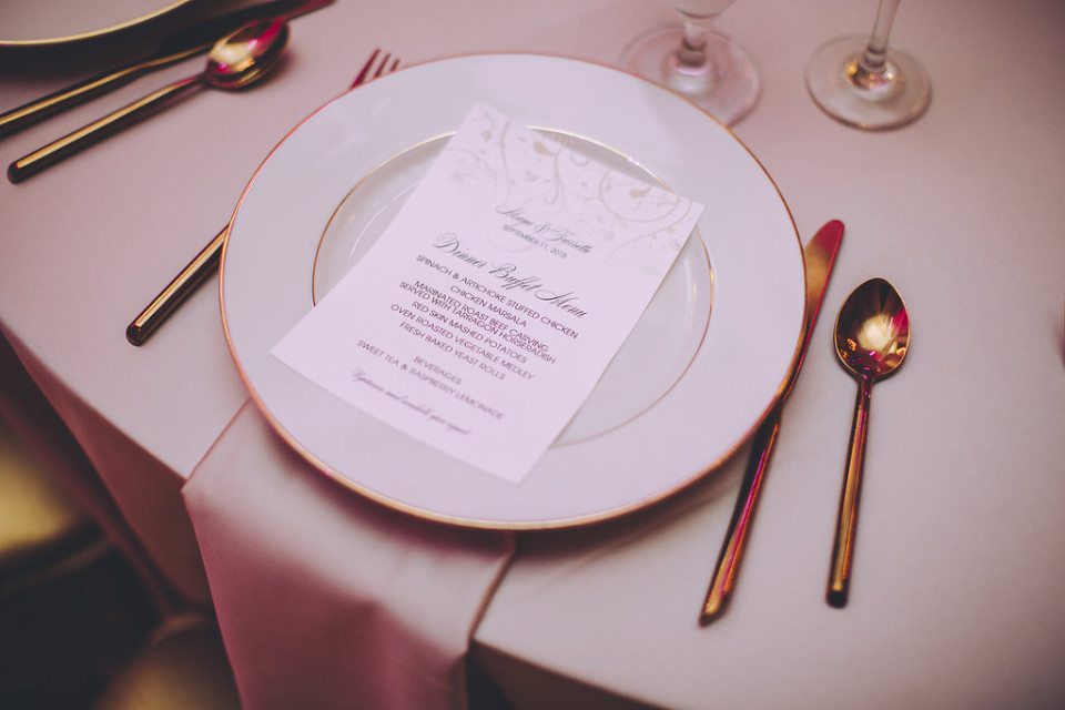 It’s OK if both of you aren’t into every aspect of the wedding planning.  At a certain point we learned what to let go of and allow the other person to be the lead on, and trusting what we know about one another to make the best decisions possible.  I realized my husband wasn’t going to have much to say about whether our plates were gold trimmed or not, and that was just fine.