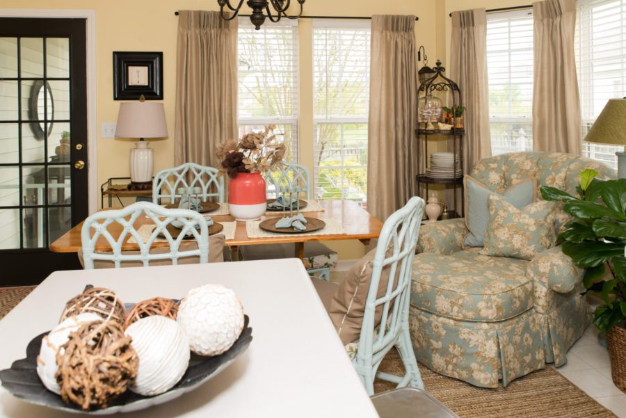 I actually have a huge comfy chair and in my kitchen. It was purchased for another space but turned out to be too large. I placed it in the kitchen and it is the seat guests ALWAYS fight over. It’s not totally reflective of my current style but I’ve grown to love it. It’s one of those southern additions that make guests comfortable and that alone makes it totally worth keeping.