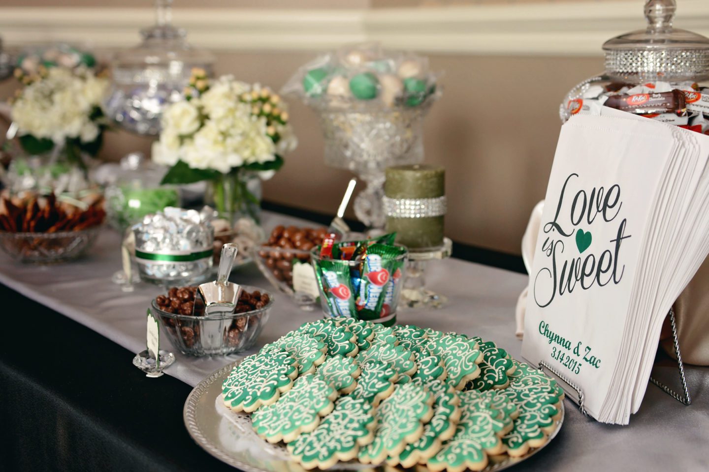 What were your wedding colors? Hunter Green, Silver, Black, & Ivory