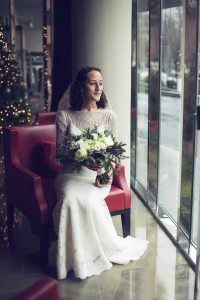 Our venue was very eclectic, so at the reception we kept things pretty simple with just natural, deep and neutral winter colors- white, cream, green, and Kris and I both wore hints of Navy Blue